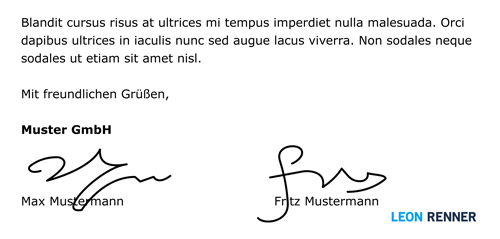In welcher Reihenfolge fügt man zwei Unterschriften in einen Geschäftsbrief ein?