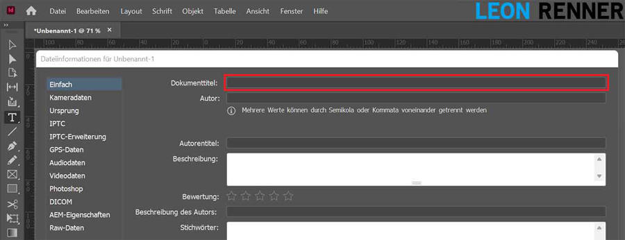 For professional documents, you should always fill in the document properties as best as possible. At a minimum, however, you must insert the document title. You can add this in the “File” > “File information…” tab.